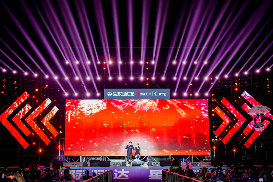 為了便于觀眾觀看,搭建的舞臺要有一定的高度,要根據(jù)觀眾席的長度去調(diào)節(jié)舞臺的高度,觀眾席越長,就要相應的調(diào)節(jié)舞臺的高度,以便后面的觀眾也能看到;這次活動的規(guī)模很大,出演的演員也多,舞臺的層次感一定強,為這個問題,我們一次又一次的實驗,力求最好的角度,呈現(xiàn)最好的效果。
